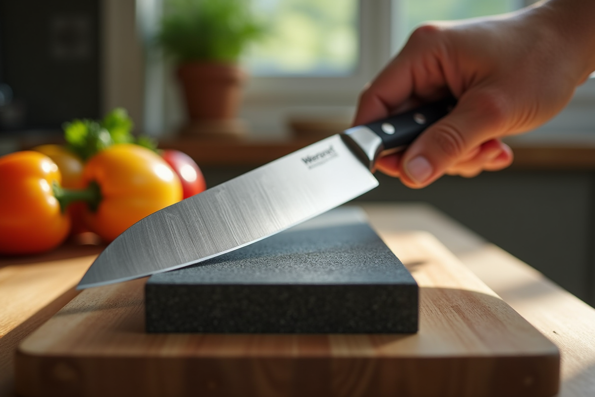 Un affûtage régulier, même léger, entretient le fil. Privilégiez un fusil d’aiguisage adapté : la céramique pour les aciers tendres, l’acier ou le diamant pour les lames plus robustes. Frottez sans forcer, toujours dans la même direction. Inutile de jouer les forgerons : c’est la constance qui paie.